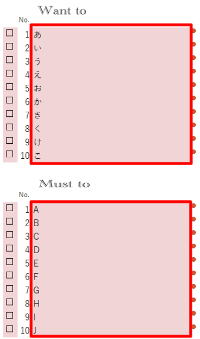 月末や月中にクリアしたものは左側の□に☑マークをつけます。