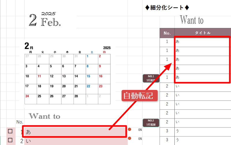 そしてその合計は1番左側の「今月したいこと、すべきことをリストアップ」に