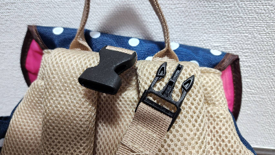 幼稚園リュックに付けるには、同じサイズの差し込みバックルが必要・・・