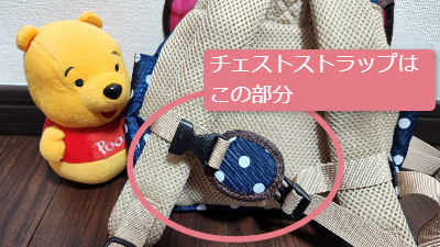 チェストストラップというのは、胸にあたる部分のストラップです。