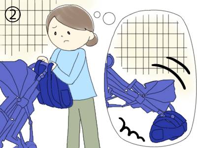 旅行中でベビーカーの下にもすでに荷物を入れていたので、つい棚に置いてしまったのでした・・・