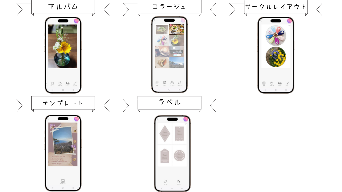 その他アプリで写真を選んで、スタンプや文字を入れたりもできます。