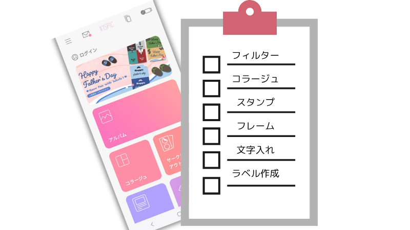 iNSPiCのアプリ内でも様々な写真加工ができます。